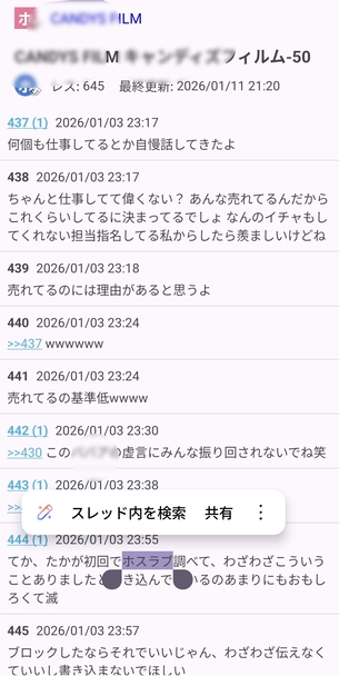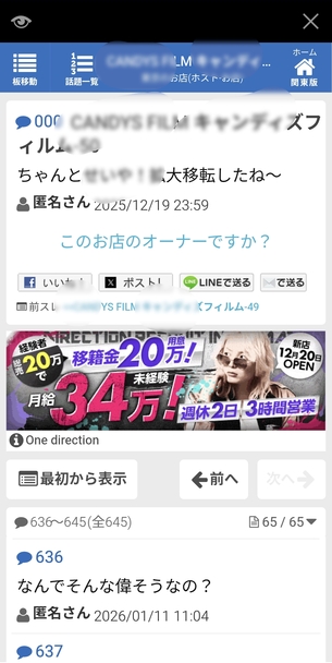 在籍を確認して、そのまま掲示板の口コミスレへ